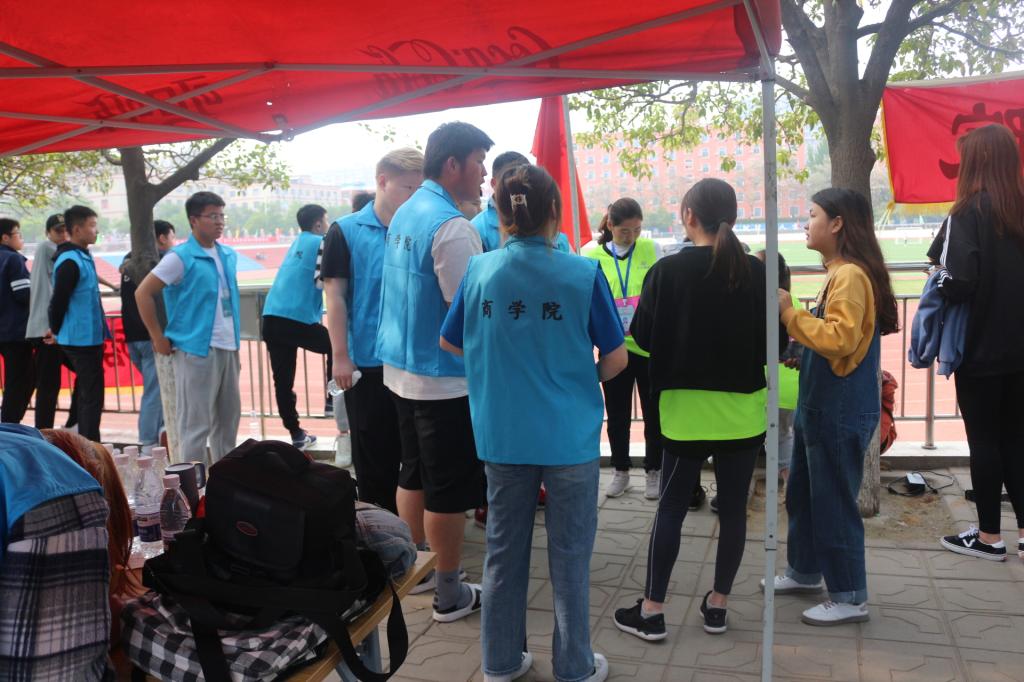 运动会开始之前,我院团学各部门已经开始了幕后筹备工作。首先,每个部门都参与到运动会加油稿的准备工作中。其次,我系团学又做了详细的分配工作。传媒部负责微博、QQ适时更新动态,并负责运动场上及场外的拍照,保留精彩瞬间;体育部负责时时准备为下场的运动员递水;其他各部门在场外为我系运动健儿加油助威,因为有了他们声嘶力竭的呐喊声,我系运动健儿充满力量,奋力向前;各团学部门都积极的投入到整个运动会中,特别是各个部门的男同学们,在运动会期间,每天集合去布置大本营,他们团结一致、井然有序的开展工作,只为我院可以争得更多的荣誉!