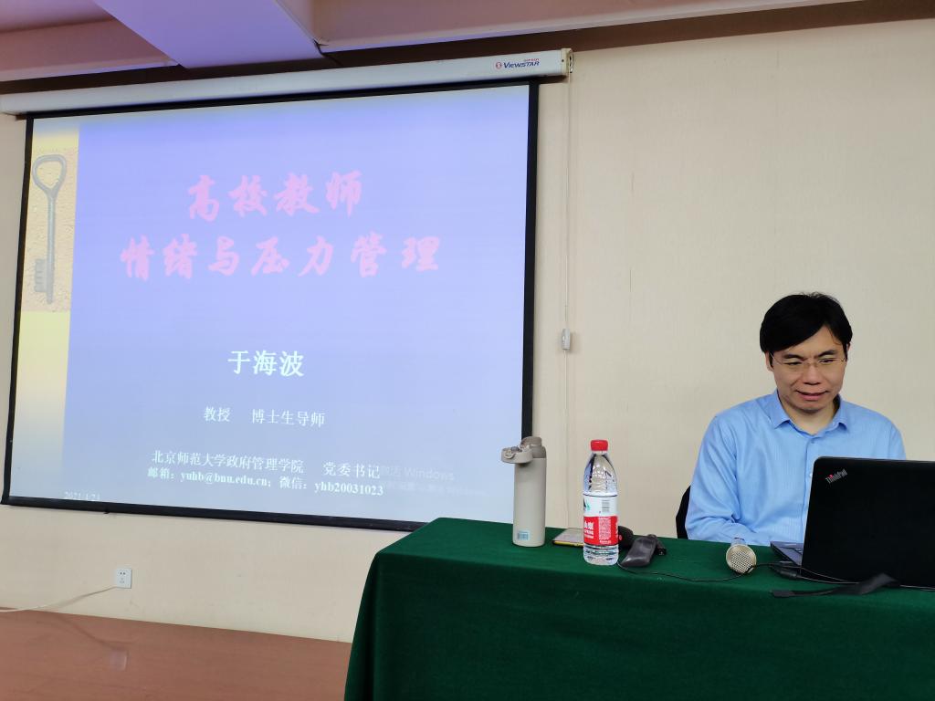 于海波教授报告的主题是高校教师个人情绪与压力管理,从思考教育的本质出发,坚持立德树人、三全育人,打造高质量的育人体系,努力做到心理资本、社会资本、人力资本,“3C同育”,认为教育既是科学真,也是艺术美,更是善举。教师既是科学家,也是艺术家更是慈善家。