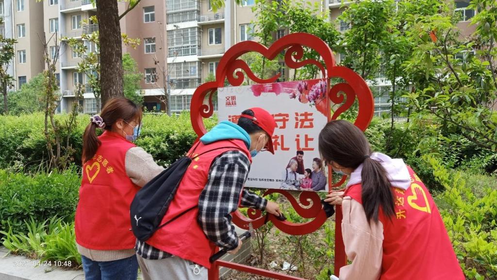 为弘扬志愿服务精神,美化社区环境,鼓励学生主动承担社会责任,文法学院青年志愿者协会于4月24日在金东亮老师的带领下参加“绿城使者进社区”志愿活动,志愿者们积极踊跃报名参加本次活动。