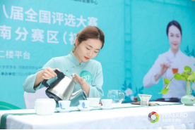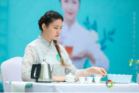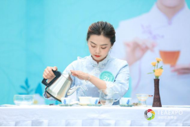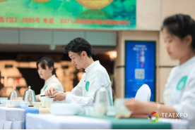 选手们身姿优雅,手指灵巧、素手翻飞,展现着精妙绝伦的茶艺表演