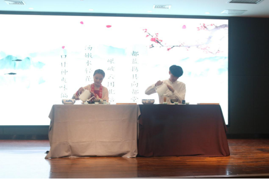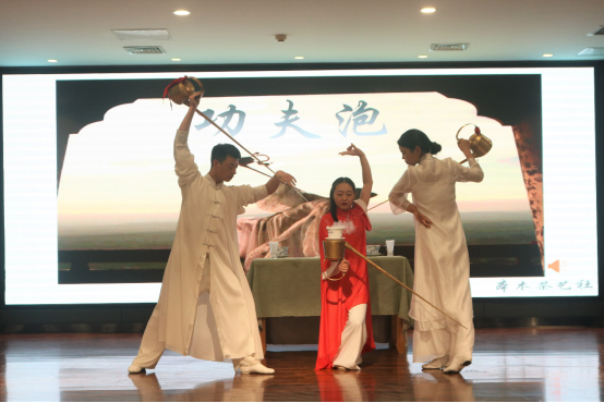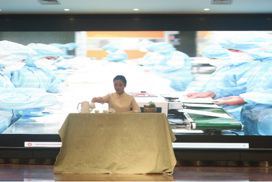 城墙根给大家带来的创新茶艺《功夫泡--长嘴壶》更是让大家感受到了他们精湛的茶艺和茶文化的魅力所在,把整场活动推向了高潮。一曲艺术性与技巧性的《点茶》让人不禁赞叹其茶艺技术高超;人们常说茶是草中仙,日月入芽尖,蒙蒙漠漠香色绝,还需妙手巧烹煎。三人成行的《长嘴壶》给人不同的视觉盛典;节目的最后以情景剧《最美逆行》致敬新冠疫情中每位逆行者,伴随着一首《初心》,让大家在优雅的茶香中,大家好像又回归到那个最初的自己,心简如素,人淡如菊。