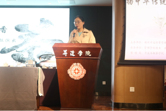 活动伊始,管理学院党总书记张小雁老师率先发表致辞。她首先向各位嘉宾的到来表示欢迎,并分享自身对“茶”及“茶道”认识与领悟,同时讲述茶文化及其来源,包括茶道、茶德、茶精神、茶学、茶故事、茶艺等。并从独特的角度谈论茶文化、茶生活、茶与健康及等多方面与现代健康生活方式贴切相关的话题。她希望本次的茶艺活动能为升达学子增添浓厚的茶文化氛围,让广大学子感知茶香、体会茶情,弘扬中国传统的茶文化,从而推动茶文化的进校园活动。