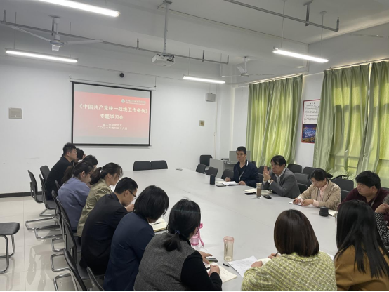 为深入学习宣传《中国共产党统一战线工作条例》(以下简称《条例》),全面准确学习领会党的统一战线理论方针政策,提高统战意识,确保《条例》各项规定得到贯彻落实,4月29日上午在实训大楼324会议室,建筑工程学院党总支召开会议集体学习《中国共产党统一战线工作条例》。会议由建工学院党总支书记韩炎涛同志主持,学院组织委员、宣传委员、学院各支部书记等相关人员参会。