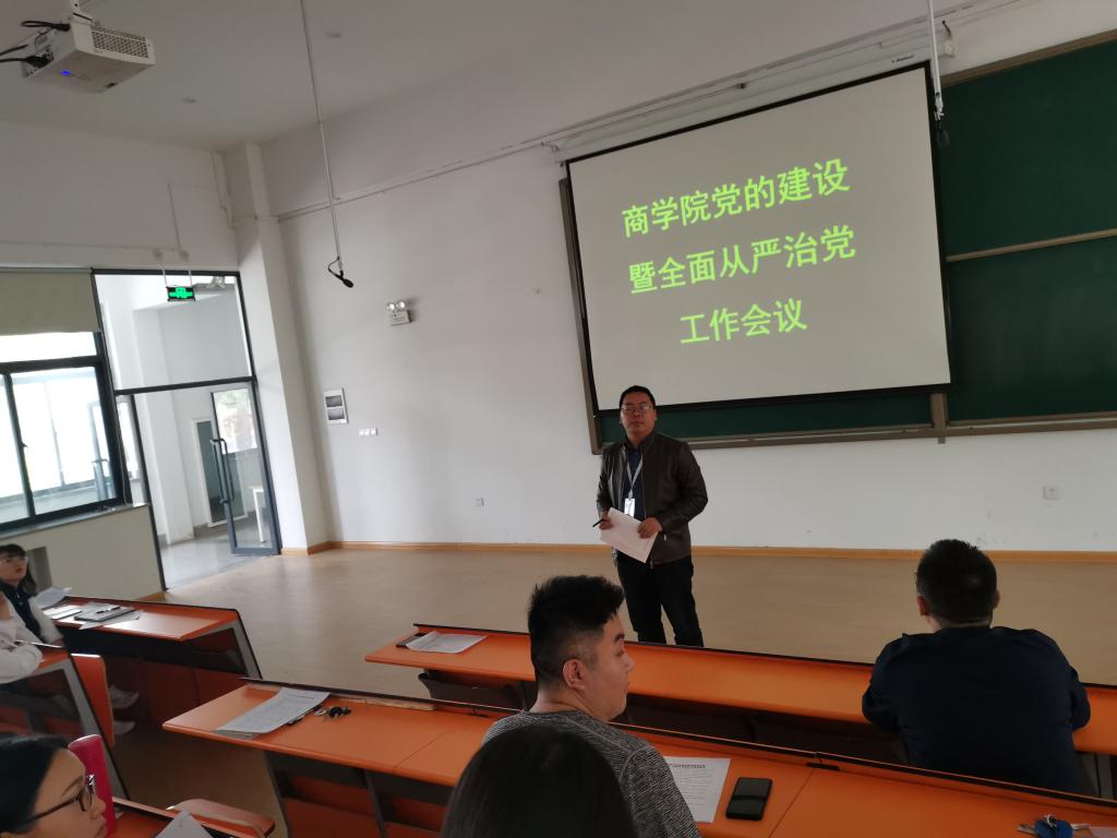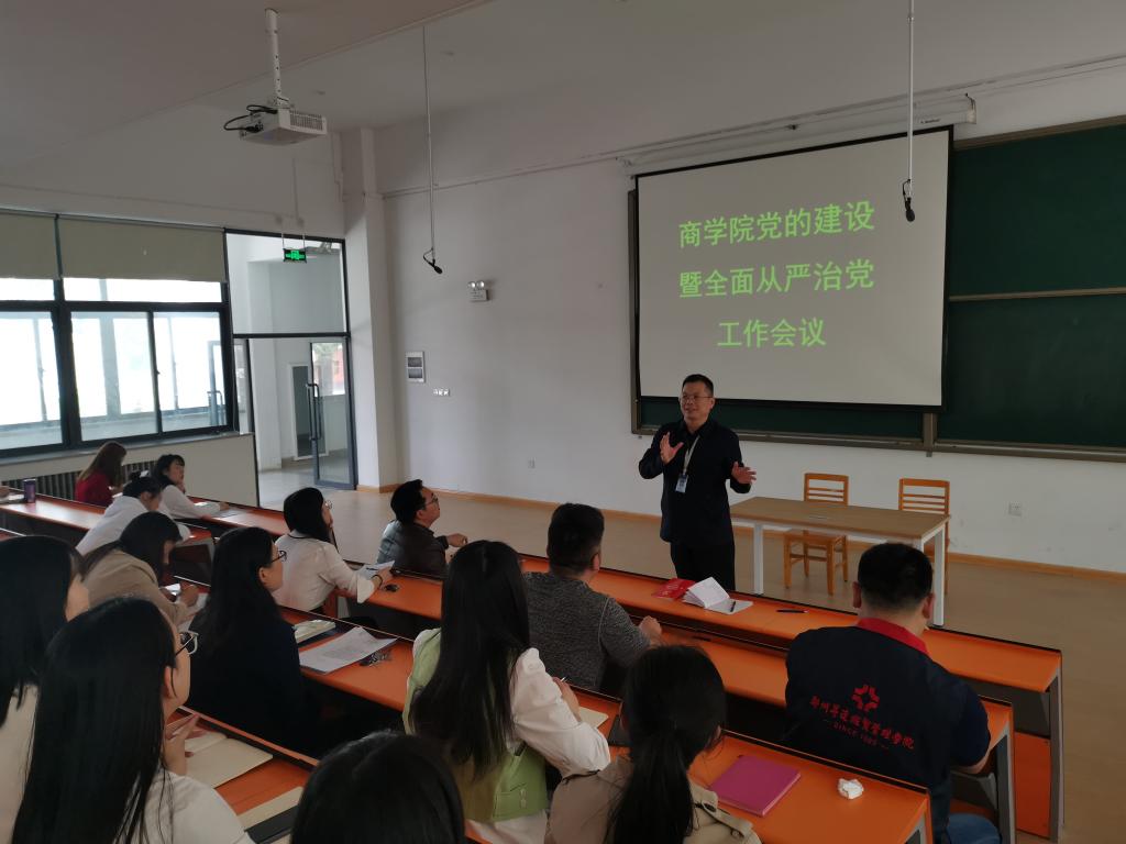 4月29日,商学院党总支在教学2号楼116教室召开党的建设暨全面从严治党工作会议,安排部署我院2021年党建和全面从严治党工作。会议由党总支委员、行政秘书兼团委书记郭峰同志主持,商学院全体教职工参加了此次会议。