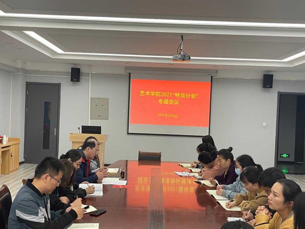 5月8日,艺术学院在411会议室针对河南省教育厅等四部门印发了《关于做好2021年农村义务教育阶段学校教师特设岗位计划实施工作的通知》召开会议。参加会议的有艺术学院院长李惠莉、党总支书记韦杨建、行政秘书、教学秘书及全体辅导员老师。