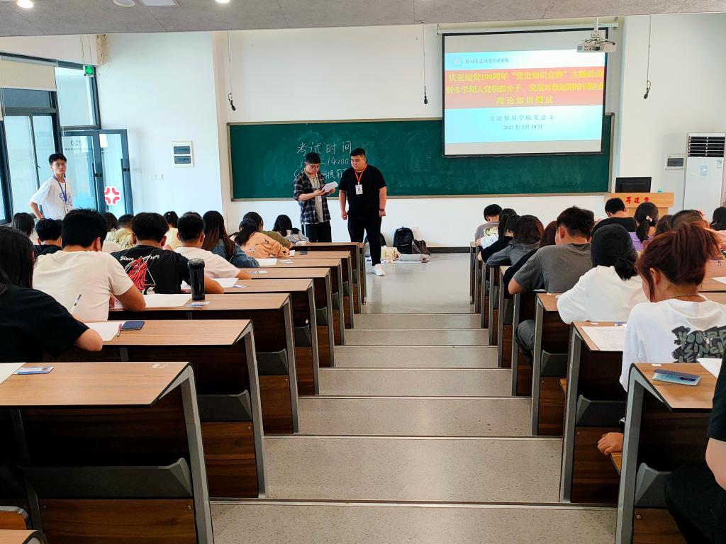 为庆祝中国共产党成立100周年,深入推进党史学习教育,紧跟新时期党的建设的需要,引导全体师生不忘历史、牢记初心、知史爱党、知史爱国,及提升第十三期积极分子和发展对象党性修养,5月10日,学院党总支于教学3号楼110、210、107室举行庆祝建党100周年“党史知识竞赛”暨第十三期入党积极分子、发展对象培训结业理论测试,此次活动的主题是“庆华诞、学党史、悟初心”。