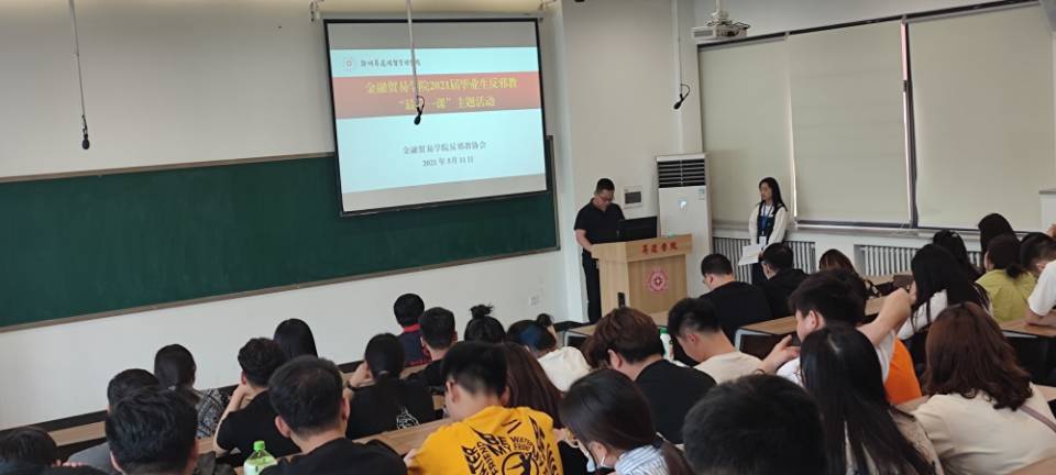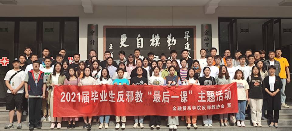 为进一步落实学校反邪教工作“四课”教育,使学院广大毕业生对邪教有更多更深入的了解和认知,进一步增强他们识邪、辨邪、防邪、拒邪、反邪的能力,营造健康和谐的校园氛围和社会风气。在学院毕业生毕业答辩之际,2021年5月11日下午,金融贸易学院反邪教协会在教学3号楼210室开展了2021届毕业生反邪教“最后一课”主题活动。金融贸易学院反邪教协会李雷老师和各毕业班学生代表参加了此次活动。
