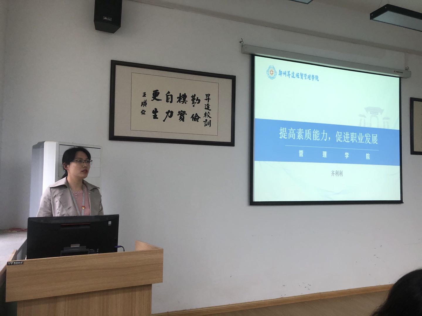 首先,我院邀请我校优秀辅导员代表齐利利老师为我院辅导员开展了辅导员工作技能培训。培训以“新时代辅导员的职业发展与素养提升”为主题,齐老师分享了多次参加辅导员职业技能大赛的的经验和感悟,同时提到,在辅导员的日常工作中要善于发现细节,真正关心学生,善于利用各种途径夯实自己的专业基础,提升自身工作能力以及工作中的价值感、效能感和幸福感。