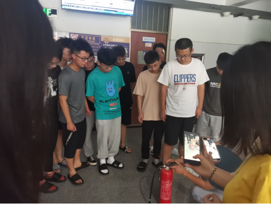 此次演练中,罗老师现场讲解了灭火器的使用原理和适用范围,详细介绍了灭火器的构造,并演示了灭火器的使用方法。罗老师强调,使用干粉灭火器常用方法为按把法,将灭火器提到距火源适当位置后,先上下颠倒,松动干粉,然后让喷嘴对准燃火处,拔取保险销,压下压把,便会喷出灭火。