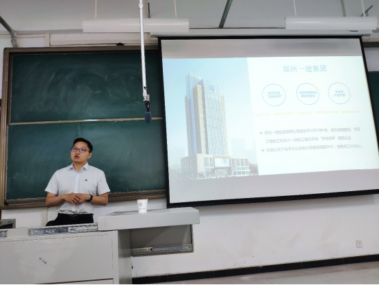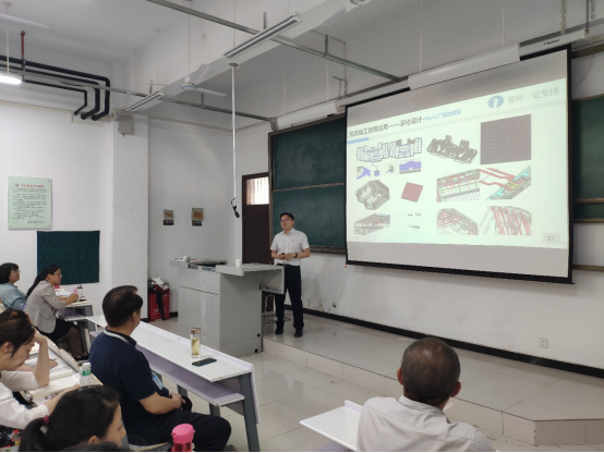 王闹主任报告内容主要分为:企业智能建造应用现状、企业智能建造应用介绍及数字化应用价值体现要素三方面。结合郑州一建公司目前BIM技术应用情况,首先先从同学们熟知的BIM技术讲述,激发了在场学生的浓厚兴趣,并在融洽的互动交流中与同学们一起领略Revit的奇特魅力;然后介绍了钢结构Tekla、铝膜板solidworks等软件的应用;最后王闹主任向与会师生分享了自己的心得体会,他告诉同学们从业后应尽快明确自己的工作目标和行业使命,努力学习,不断实践,积累经验,这样才能不断进步和提高。