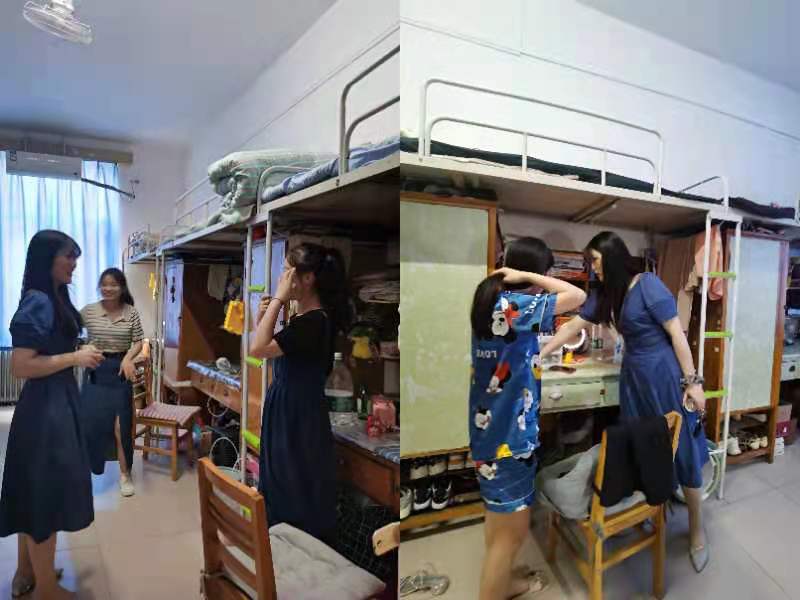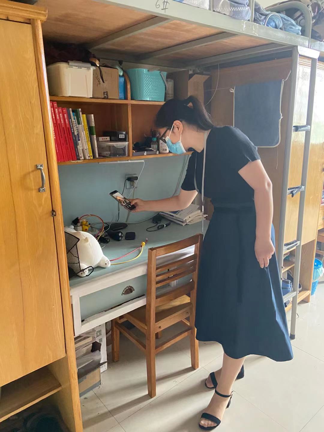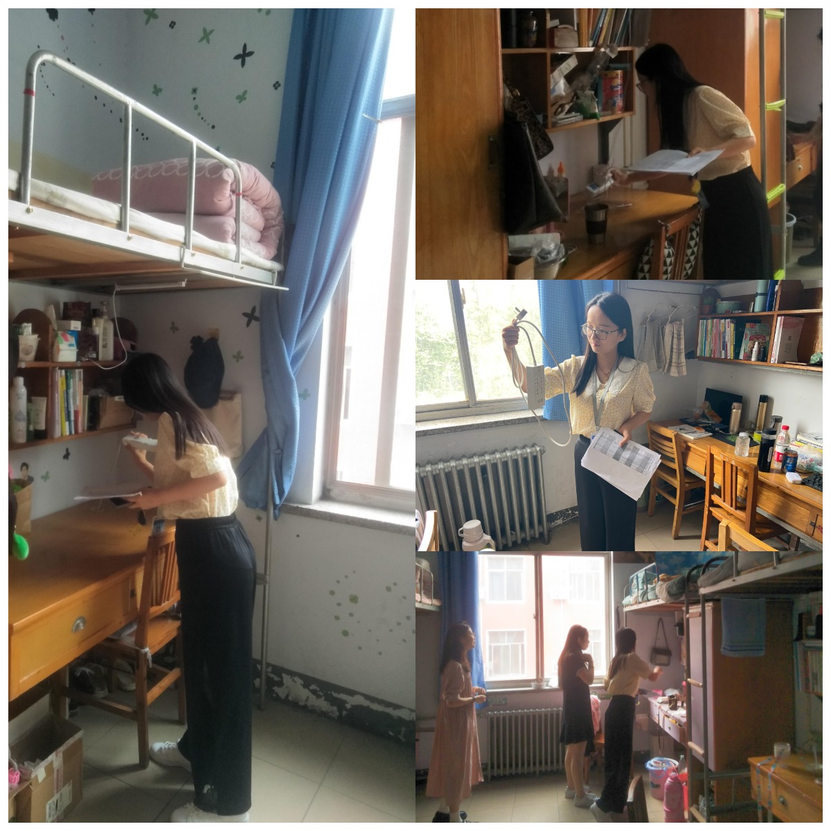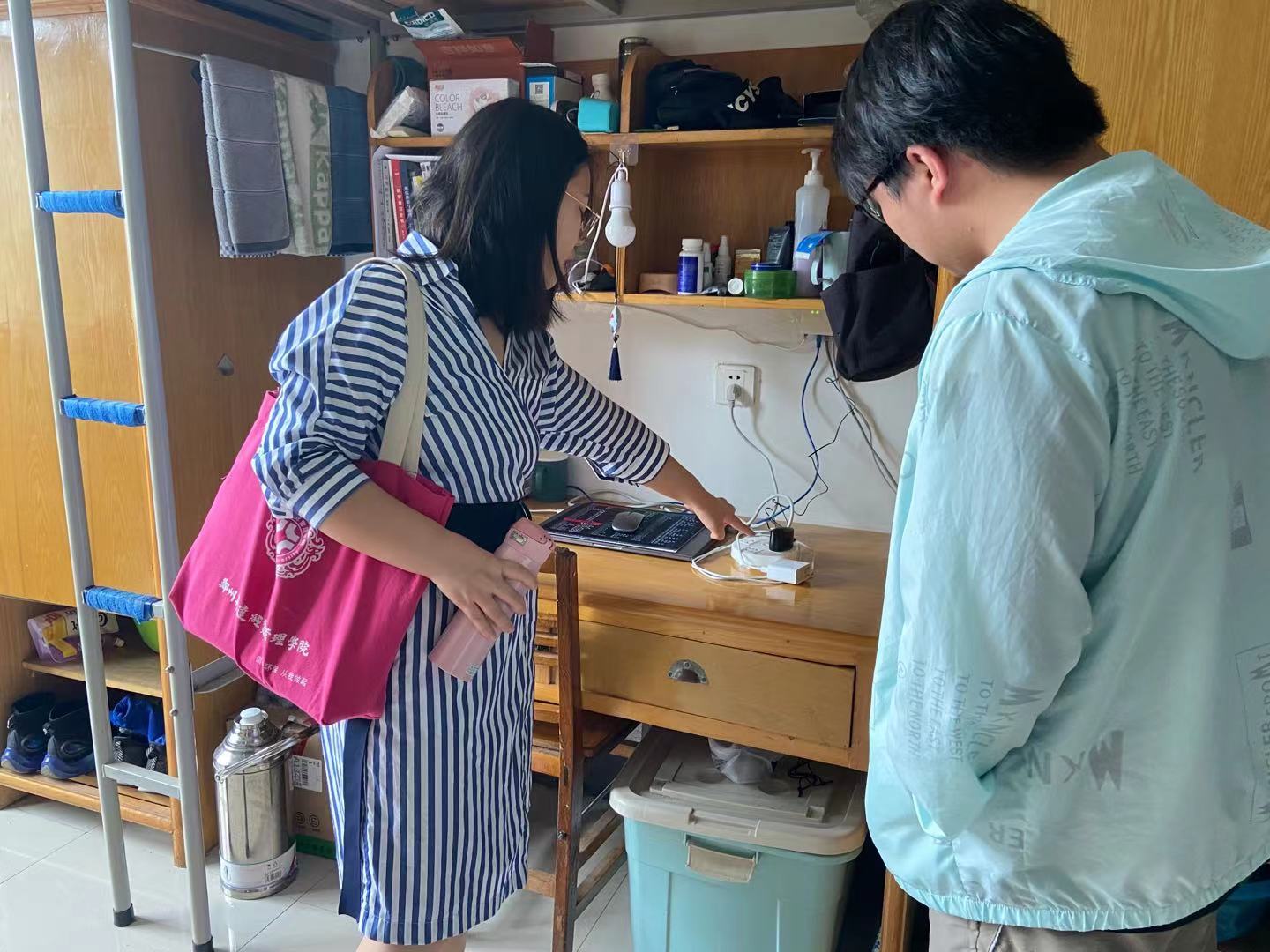 2021年5月31日至6月1日商学院18级本科及20级专升本辅导员杨慧、张楠、张莹、张馨予、李婉君老师深入到学生宿舍排查宿舍用电安全隐患。
