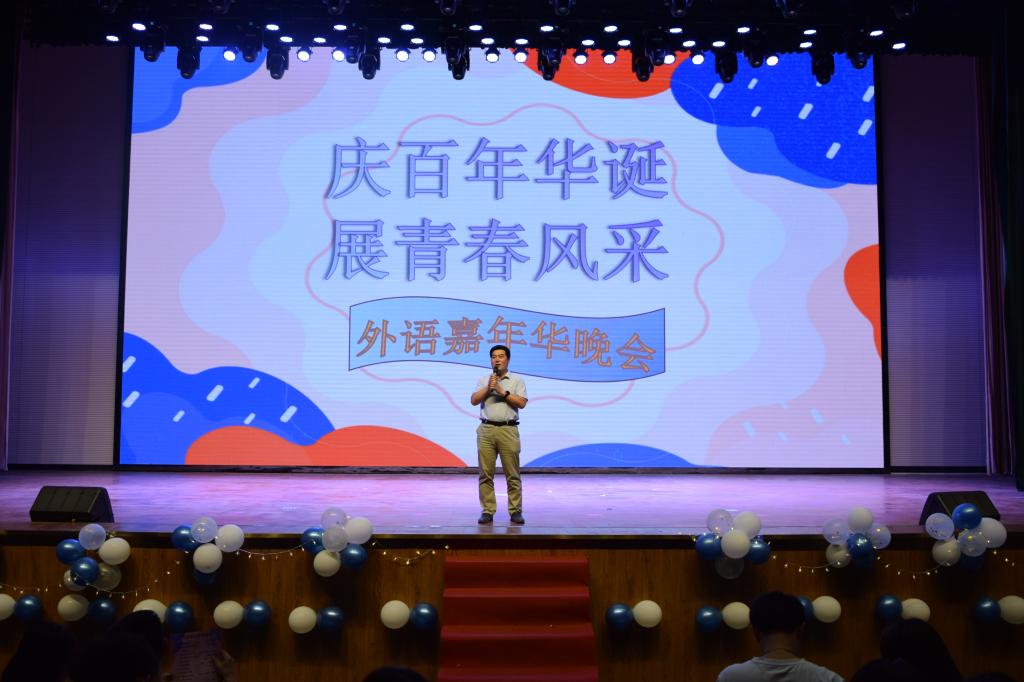 晚会开始之前,外国语学院石皓召书记上台致辞,他表达了对嘉年华如期召开的美好祝愿,同时鼓励同学们用奋斗的青春书写精彩的华章,不负年华,勇攀高峰。