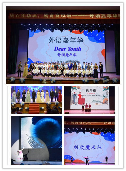 5月26日晚19:00—21:00,外国语学院“庆百年华诞,展青春风采” ,主题嘉年华晚会在思源会馆隆重上演。外国语学院党总支石皓召书记、校团委副书记李松涛老师、院行政秘书兼团委书记惠凯赟老师以及来自各兄弟学院的近2000名师生一起观看了晚会。