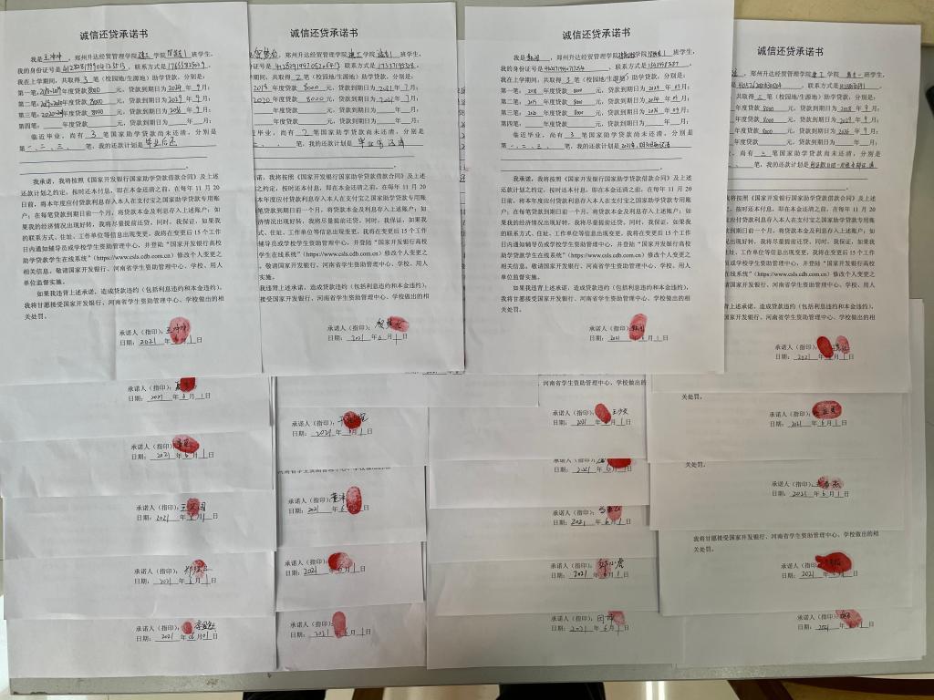 组织贷款毕业生签署《诚信还贷承诺书》、为2021届提前还清贷款的学生颁发“诚信还贷优秀学生”荣誉证书,鼓励贷款的毕业生积极还贷、诚实守信、自强自立,教育贷款毕业生能够常怀感恩之心,树立感恩、诚信的观念,用自己的行动回报国家、社会、学校。