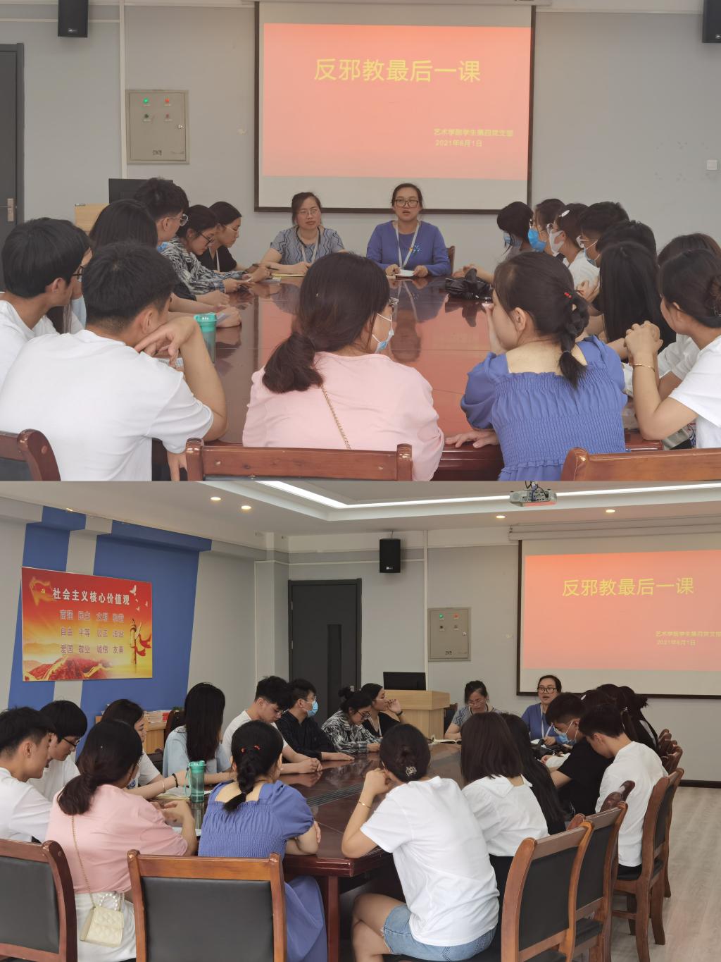 为了让毕业生党员时刻树立科学的思想观,保持党的先进性,进一步增强自身责任意识,识别邪教、防范邪教意识,艺术学院学生第四党支部特在毕业生离校之际,6月1日中午13:00,在艺术楼411召开“毕业生党员反邪最后一课”主题学习活动。