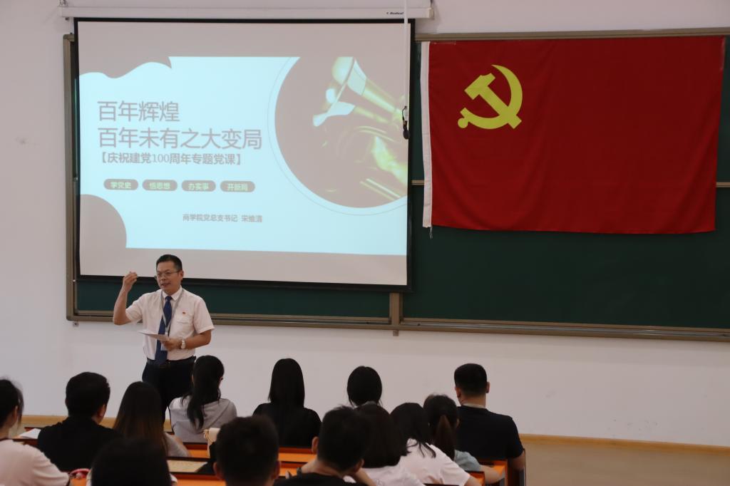为进一步加强毕业生党员的思想建设工作,推动我院毕业生党员提高自身政治意识,深化理想信念教育,6月3日下午,商学院党总支宋维清书记为毕业生党员讲了一堂生动的党史专题党课。2021届全体毕业生党员参加此次党课学习。