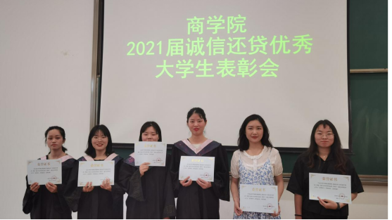 2021届毕业生即将离校,截至目前,商学院2021届毕业生中生源地贷款还有200余名同学尚未还清。为使贷款毕业生发扬诚实守信作风、学会感恩、以实际行动回报社会,认真履行国家助学贷款借款合同还款协议,按时足额归还贷款,做好院系学生毕业后的国家助学贷款管理工作,商学院于2021年6月3日上午11点在教学2号楼116教室召开诚信感恩教育暨2021届诚信还贷优秀大学生表彰会。
