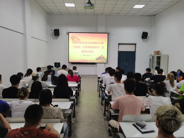 为了加强学院全体入党积极分子的政治理论学习,拓展学生支部活动开展的形式,增强党支部的凝聚力和战斗力。体育学院学生党支部于6月3日组织开展“习党史,忆苦思甜知担当”主题党日活动。此次活动的第一系列为“讲经典故事,树精神旗帜”,分为讲党史故事、讲党员故事和讲廉洁故事三个子系列。3日中午,“习党史,忆苦思甜知担当”活动在体育馆多媒体教室开展,第十二期入党积极分子和第十三期预备党员参加了此次活动。