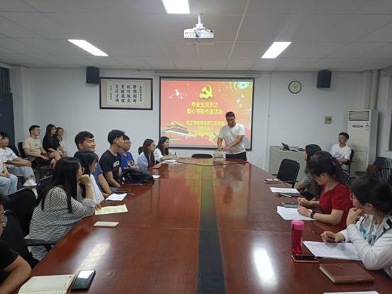 2021年6月2日中午1点,在毕业生即将离开母校、踏上人生新的征程之际,信工学院学生第三党支部在资讯楼104会议室开展了毕业生党员“1314信工人”和“爱心书籍传递”主题党日活动。会议由支部书记厉祎同志主持,支部全体党员以及发展对象参加了此次活动。
