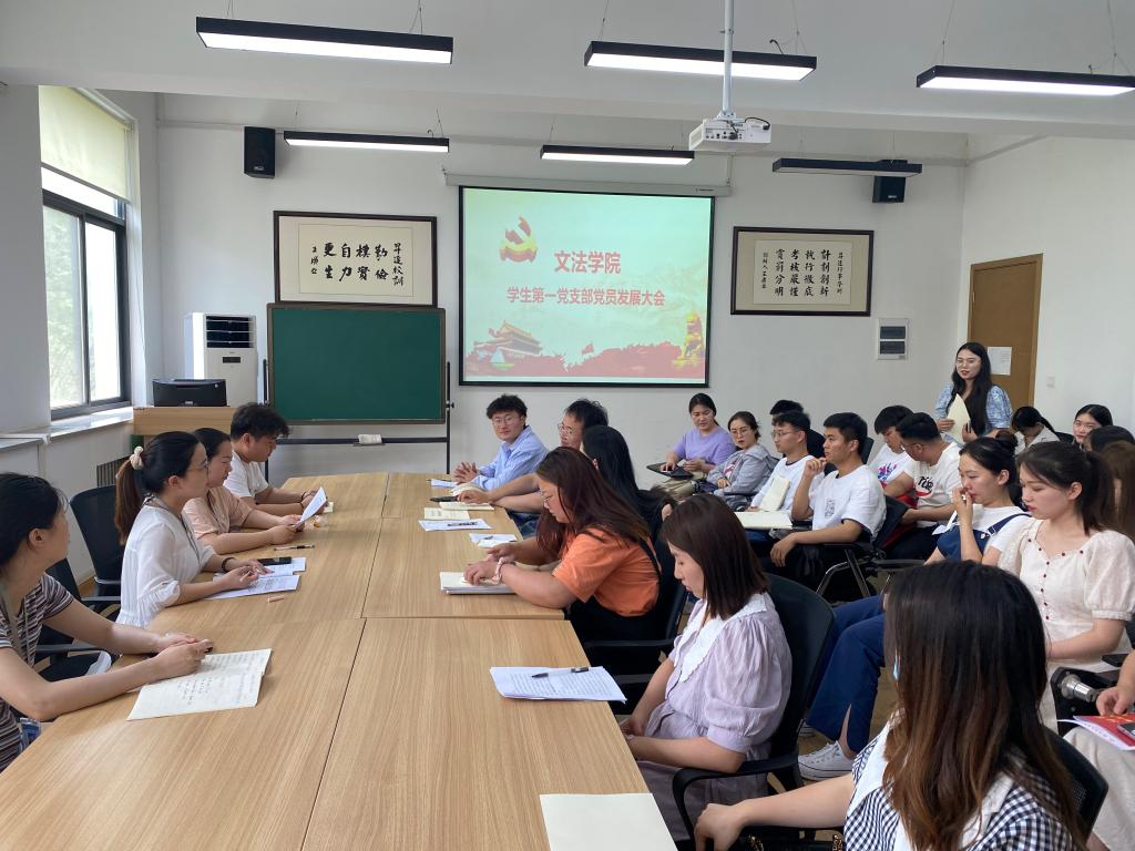 5月27日,文法学院学生第一党支部在教学一号楼314召开预备党员接收大会。参加此次会议的有文法学院学生第一党支部书记王松洁老师、组织委员李玉杰老师、宣传委员孟醒老师、金东亮老师以及全体党员,会议由组织委员李玉杰老师主持。