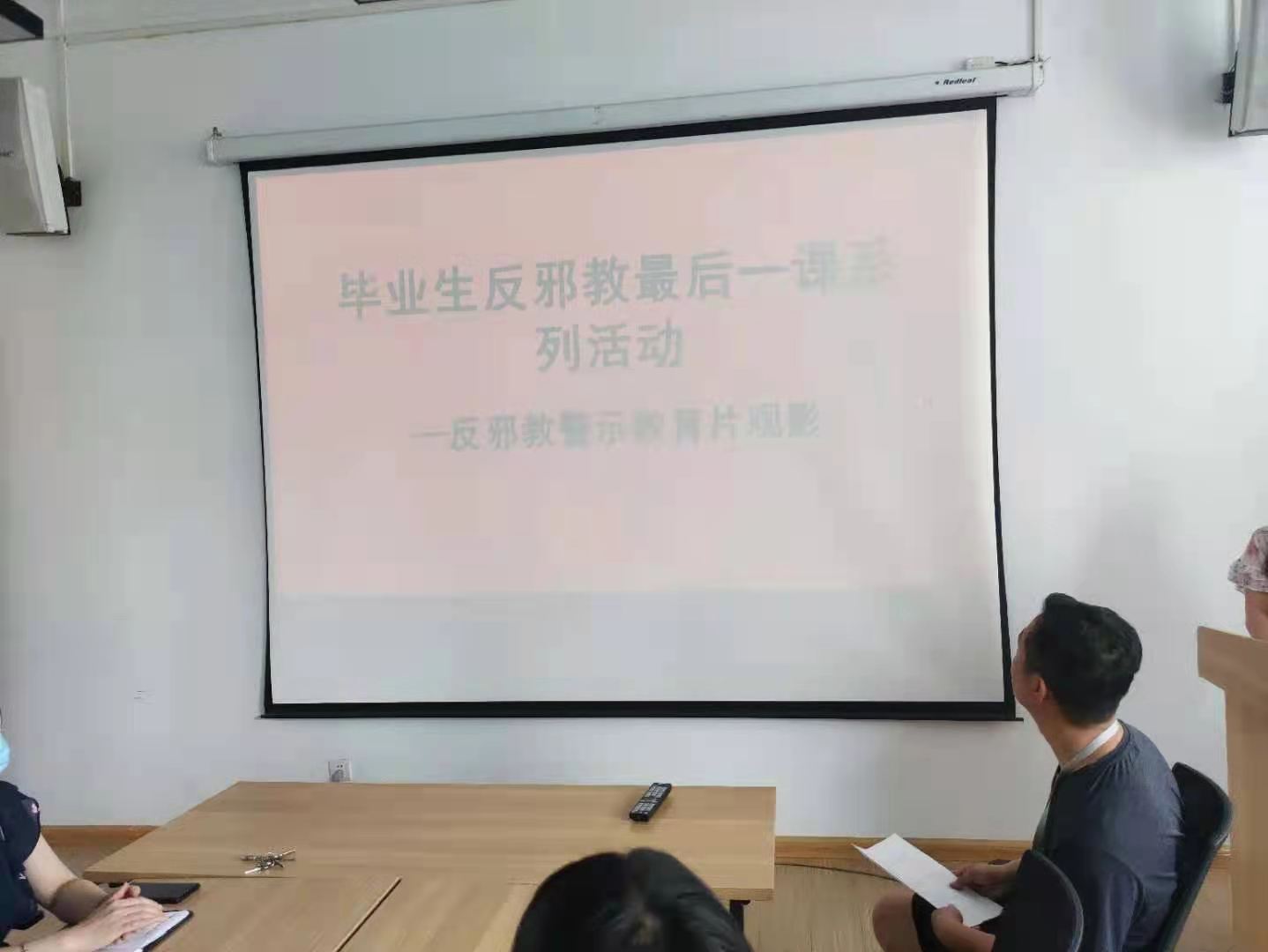 为加强2021届毕业生反邪教警示教育,进一步增强大家对邪教组织的鉴别力和防范力,筑牢大家反邪教防线。6月4日下午,商学院毕业生在2号教学楼315会议室开展了2021届商学院毕业生反邪教警示教育观影活动,活动由宋红利老师主持。