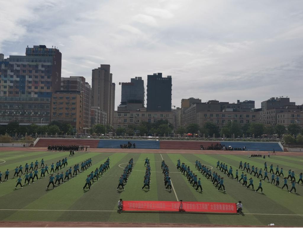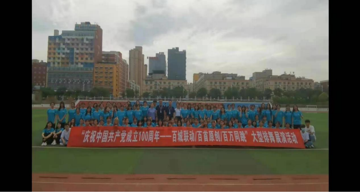 6月3日下午,为庆祝中国共产党成立100周年,体育学院社体教研室孟俊鸟主任、王春丽老师组织我校20级155名学生参加全国排舞大赛展演录制活动在学校田径场举行。体育学院张王利院长、杨明志书记莅临现场指导工作。