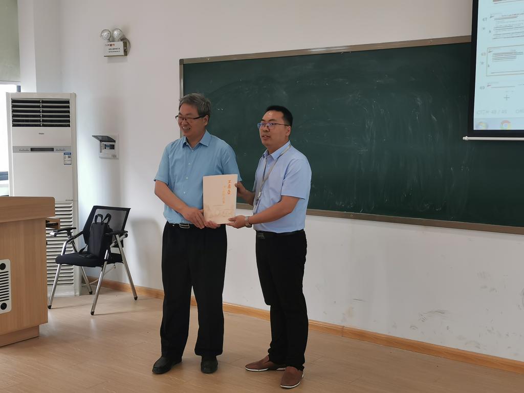 会议由商学院副院长白朋飞副教授主持。会议开始,白朋飞副院长进行发言,指出大数据背景下专业建设的重要性,希望各个教研室老师都认真思考关于专业建设的问题,并把握这次难得的学习和交流的机会。接着牛全保教授以市场营销专业为例,从专业培养目标、培养规格、课程体系、师资队伍建设、教学条件等方面进行详细的介绍,为商学院专业建设和发展问题提供了可借鉴的方案。最后,进行了现场互动和交流,物流教研室主任艾丹丹和营销教研室主任霍秀珍两位老师分别基于自己的专业提出了问题,牛教授一一作了详细的解答。为了表达感谢,白朋飞副院长现场赠送创办人王广亚先生作品集。