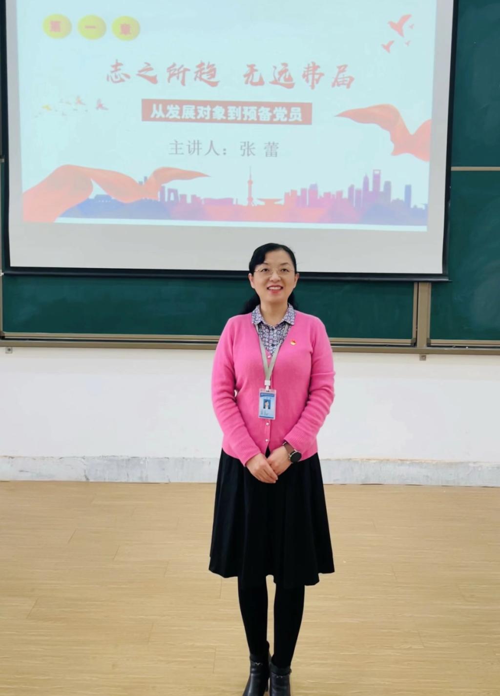 张蕾书记从回顾入党历程讲起,提出发展对象是入党积极分子的进一步提升,全体学员应做好充分的入党准备。随后她从端正入党动机、严格履行入党手续、积极参加党的活动、认真接收党组织的培训考察等几方面深入阐述,指出发展对象自觉用党员标准严格要求自己,加强党性锻炼,不断提高自己,要克服学习、工作中的困难,做品学兼优的楷模,做学以致用的典范。