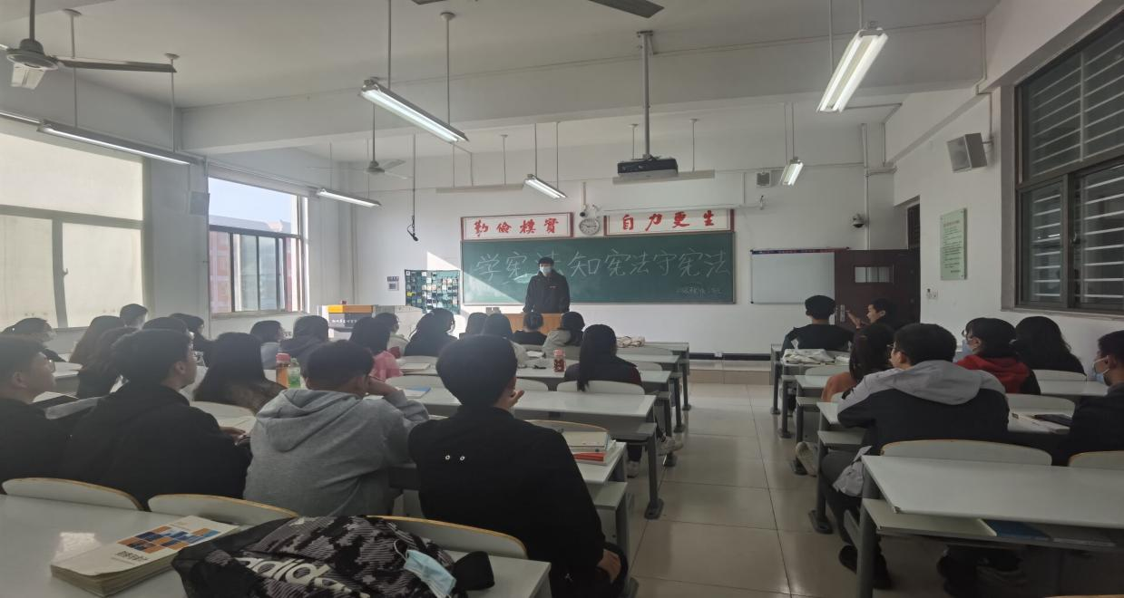 同时各班通过组织学生开班会、师生互动、知识问答等形式,向同学们介绍了我国宪法的发展过程、基本内容、法律效力等,教育学生要学法、知法、守法,学会运用法律保护自己。同学们还结合自身经历和学习情况,展开了热烈讨论,他们纷纷表示一定会以宪法为思想指南和行动纲领,努力学习知识和技能,做学法、尊法、守法、用法的好学生。