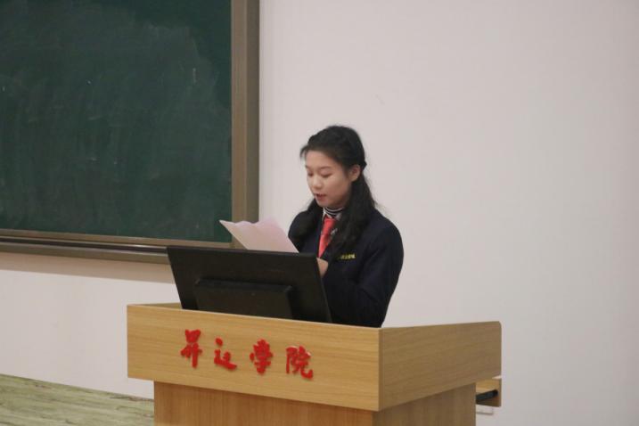新一届团委副书记牛思捷上台发言。她提出作为团学会成员要时刻牢记“服务同学,锻炼自我”的工作宗旨,并阐述身为团委副书记将履行的职责以及对未来工作的展望。