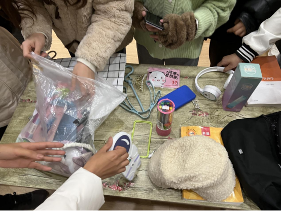 活动伊始,商学院团委学生会外联部成员拿出自己闲置不用的物品,有书籍、背包、发箍、发卡、水杯、耳机、水彩笔等等,学生对自己的闲置物品进行了简单的介绍,并一一摆放展示在展台上。现场的学生对这些物品充满了兴趣,围绕在展台周围,寻找着、讨论着、挑选着自己需要的物品,现场十分热闹。最后,所有参与物物交换的同学,都成功交换到了自己所需要的物品,并与外联部成员合影留念。至此,活动在大家的开心和满意中圆满结束。