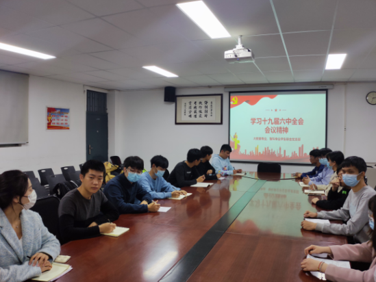 11月21日19:00时,大数据专业、智科专业学生联合党支部各班团支部书记和班长在学院会议室召开会议,支部书记王建红同志带领大家学习了十九届六中全会精神,并对深入学习全会精神作出部署要求。
