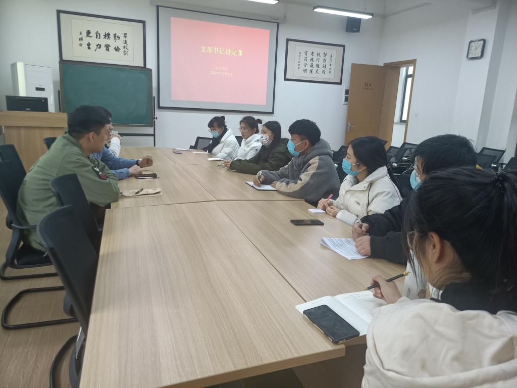 为了进一步贯彻落实党史学习教育,引导广大师生党员进一步增强四个意识、坚定四个自信、做好两个维护,做到学史明理、学史增信、学史崇德、学史力行,2021年12月8日,文法学院新闻学和网络与新媒体专业学生联合党支部在教学一号楼314会议室开展了支部书记讲党课活动,支部全体师生党员参加了此次党课学习,活动由支部组织委员舒展老师主持。