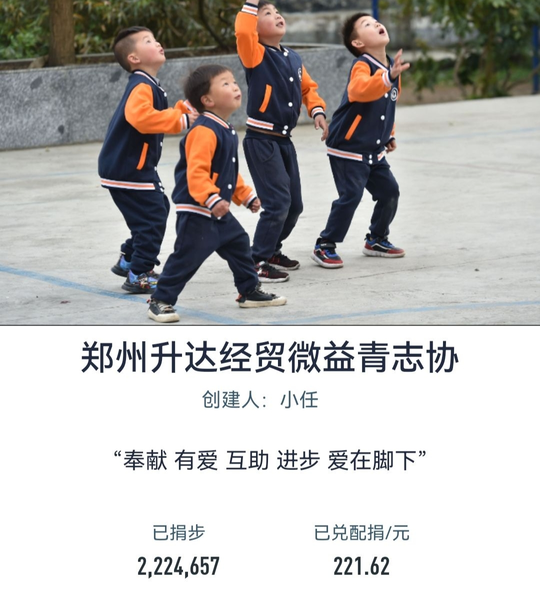 微益青年志愿者协会以“奉献、友爱、互助、进步、爱在脚下”为口号,举办本次“每日运动捐赠”公益活动。通过“每日运动捐赠”公益活动中每日捐赠自己的步数兑换相应配捐金额来帮助贫困儿童换取午餐、改善营养条件,让孩子们吃上热腾腾的饭,助力贫困儿童健康成、增强自身健康体魄。此举不仅有利于培养我院学子的爱心和社会责任感,更是让孩子们感受到人间的温暖真情。