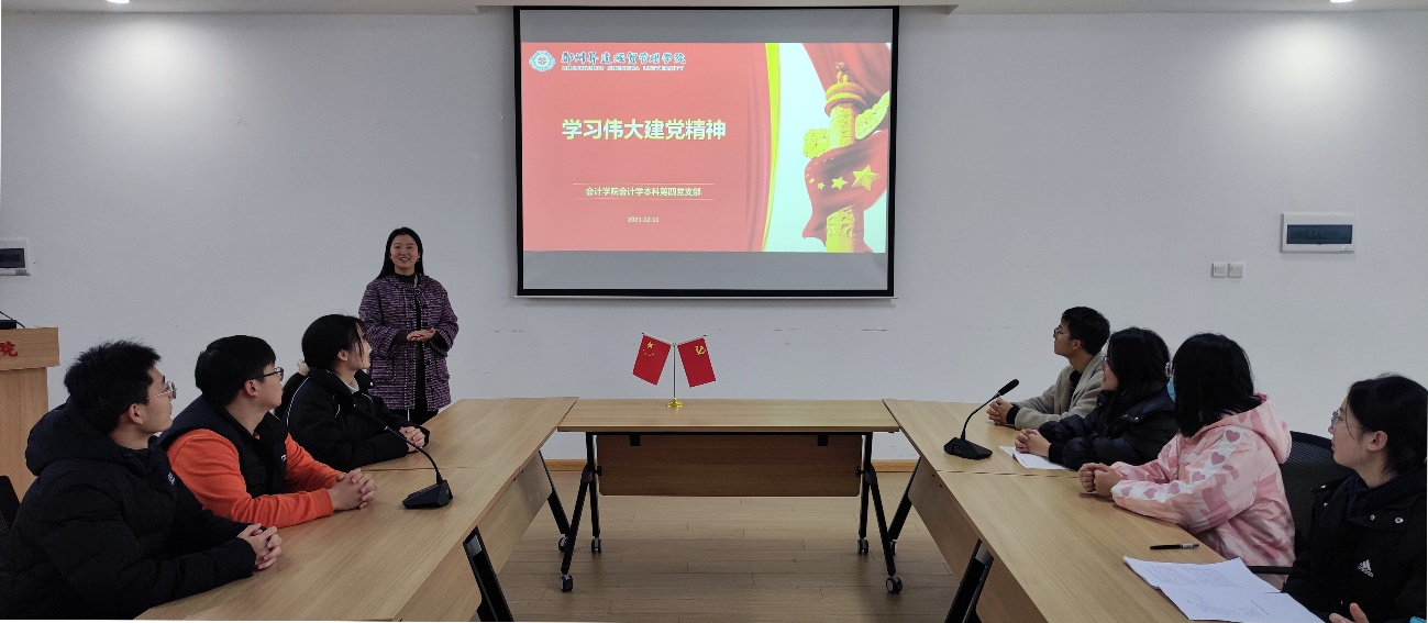 为深入学习党的十九届六中全会精神,提升党员政治素养,12月11日16:00,会计学院会计学专业本科第四党支部于4号楼209会议室组织学习党的十九届六中全会精神。活动由党支部书记孟醒主持,支部全体党员参加。