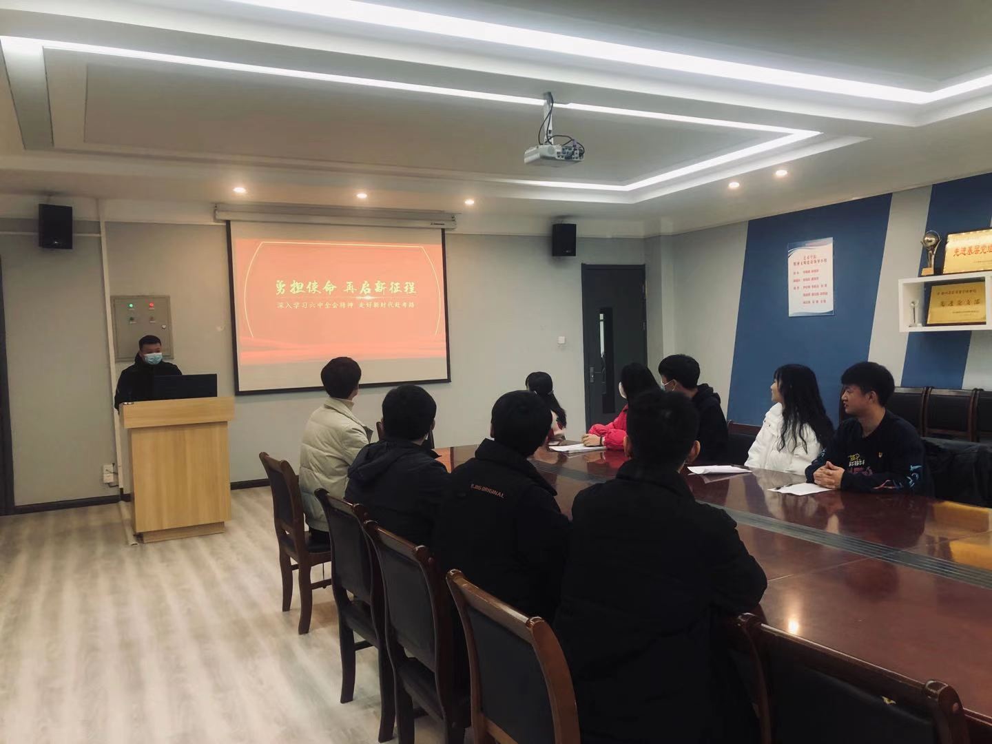 本次学习活动分为线下研读和线上讨论两种方式开展,以“学习强国”为依托,通过观看新闻视频、研读精神文件解读,支部组织委员王亚奇向大家进行了一次理论宣讲。