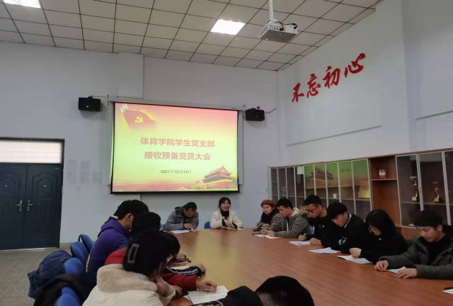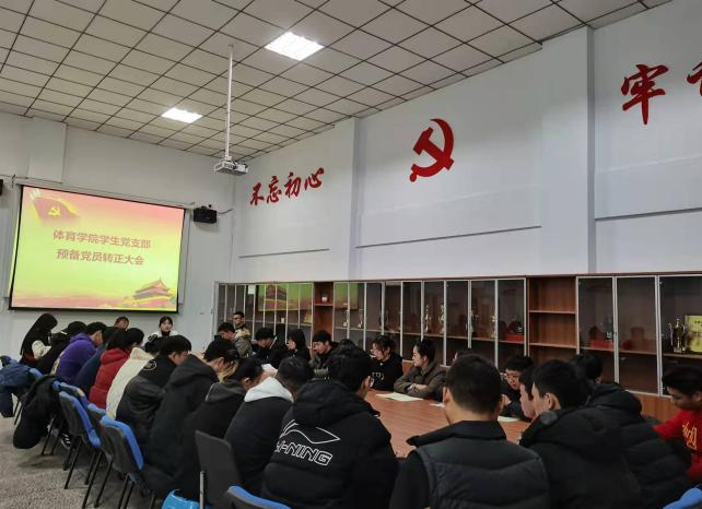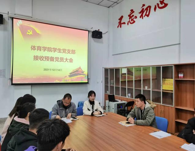 2021年12月14日中午,体育学院学生党支部在体育馆会议室召开党员发展及预备党员转正大会。大会的主要议题是12名预备党员转为正式党员及16名党员发展的讨论和表决。参加会议的有体育学院学生党支部党员、预备党员、发展对象等。会议由学生党支部支部书记高建涛同志主持。