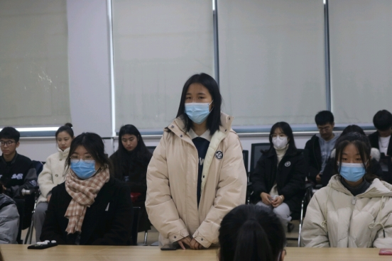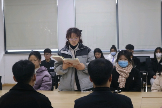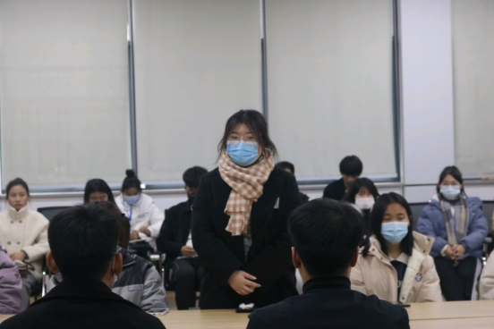 管理学院2021级辩论队成员依次进行自我介绍,接着2021级辩论队成员毛玉婷同学代表发言,她在发言中谈到辩论的意义:学会思考,学会倾听。同时也表明了日后努力为辩论队取得荣誉的决心。而后20级管理学院辩论队副队长刘静娴宣读了辩论小队行为规范同时指出以后会协助队长做好队内训练以及奖惩措施等。