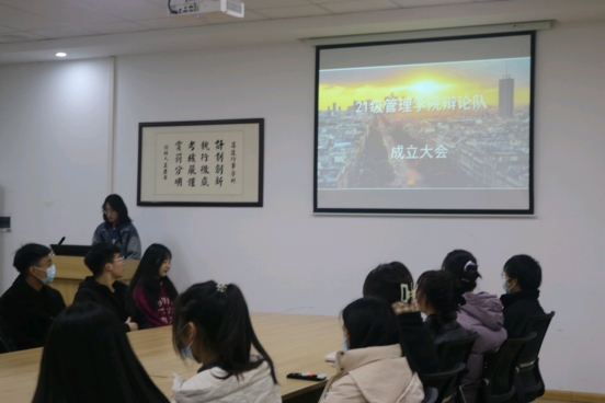 为了更好地培养学生的逻辑思考能力,语言表达能力,组织能力,让学生对社会的问题,现象有更深层次的思考。管理学院于2021年12月10日下午一点半在二号楼209教室举办2021级辩论队成立仪式。出席此次仪式的嘉宾有:团委副书记牛思捷、夏训秋,团委书记助理马鹏,学生会主席王振宇,副主席林格格、张鹏辉以及2021级辩论队全体成员。