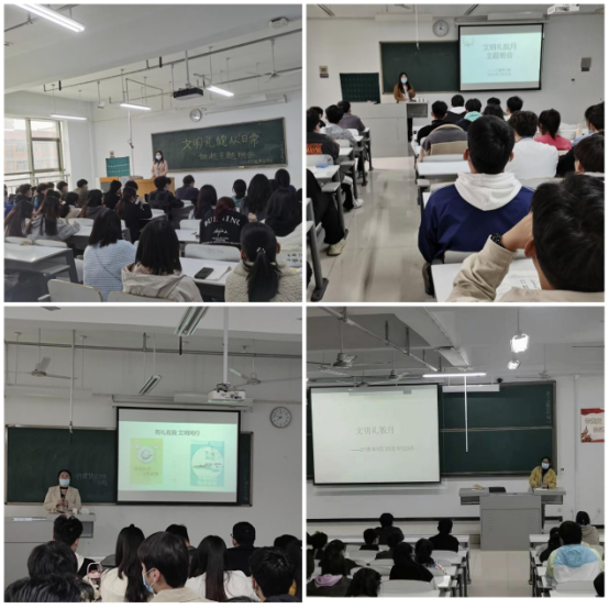 辅导员在班会上带领同学们学习《华亿在线体育中国有限公司学生校园文明行为促进办法》,倡议同学们响应学校号召,积极参加文明创建活动,在为期一个月的文明礼貌月中养成良好的文明习惯,讲文明,懂礼貌,将文明礼貌内化为自己的行为习惯,提升自己的文明素养,为将来的就业奠定良好的基础。