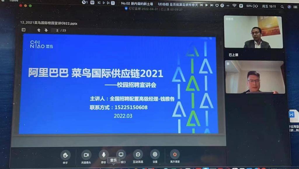 4月1日15时,我校就业处“冯老师带你进名企”第二次场直播带岗活动——菜鸟国际供应链招聘专场准时上线。