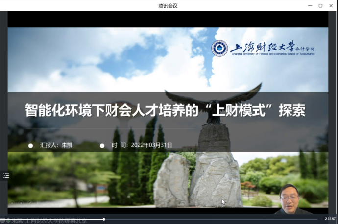 3月31日下午,会计学院各教研室及骨干教师相聚“云端”参加了数智财经人才培养模式创新与实践线上研讨会,聚焦于智能化环境下财会人才培养的“上海财大模式”探索、智能会计人才培养体系设计和专业升级、数智时代财会人才培养的校企创新行动与实践等主题。此次线上研讨会由中国商业会计学会、用友网络科技股份有限公司指导,新道科技股份有限公司、智能财会联盟、用友职业教育集团联合主办。