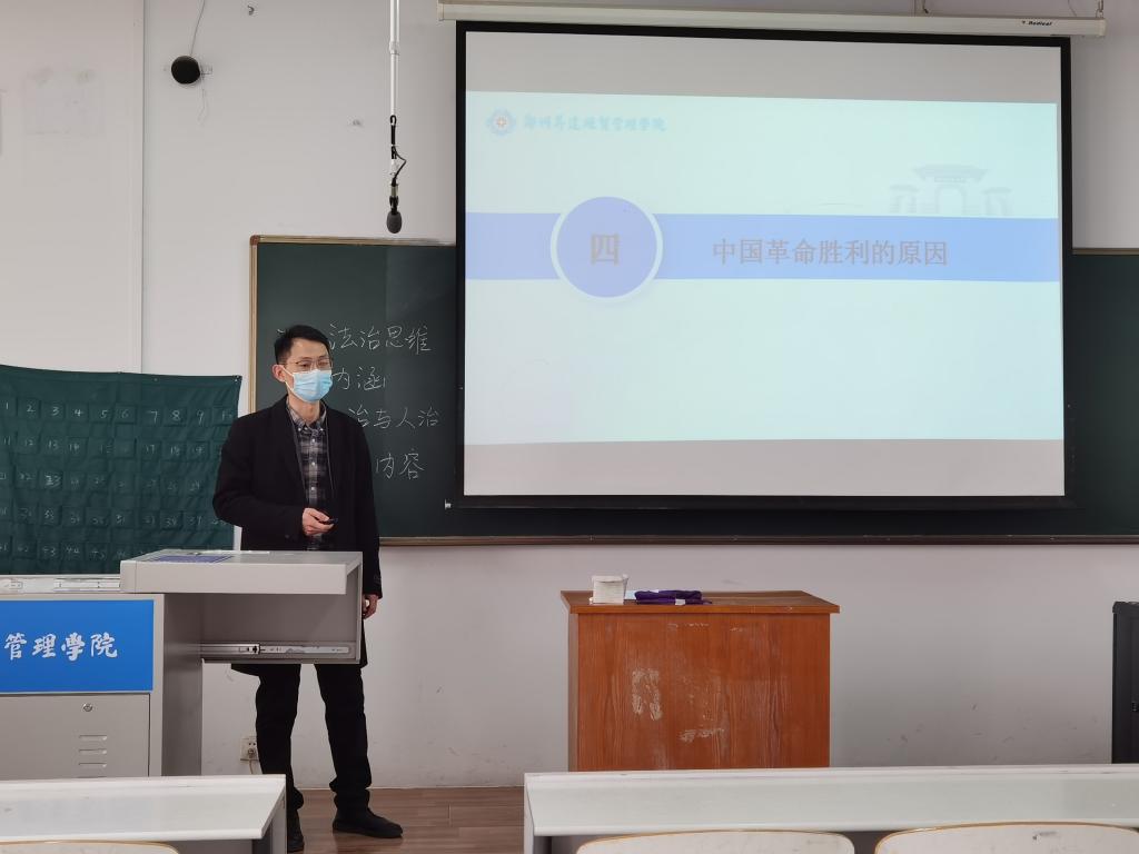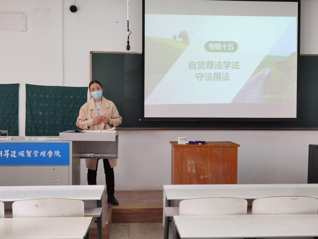 形势与政策教研室孟慧敏老师引用生动鲜活的案例,详细讲解了法治思维的内涵和特征,教育同学们要不断提高法治素养,养成心中有法、自觉守法、解决问题用法的良好习惯。