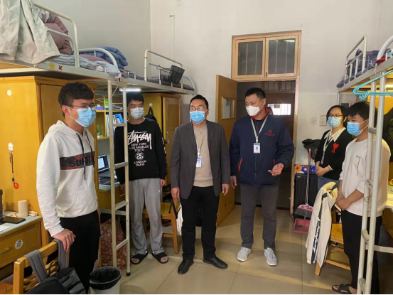 在与同学们亲切交谈中,院领导和辅导员老师询问了学生线上学习情况及封校后宿舍生活的实际困难,并就学生住宿环境、饮食问题以及寝室卫生等方面进行了交谈,叮嘱同学们严格遵守疫情防控期间学校的各项管理规定,做好个人防护,做好通风,保持良好的宿舍卫生。