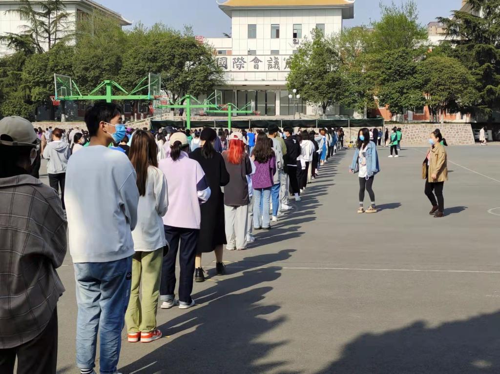 在检测过程中,辅导员提前组织学生,密切配合学院工作;学生们严格遵守检测要求,无论是检测区还是等候区都保持一米间隔距离,并在志愿者指引下,有序的按照班级、小组依次进行核酸检测。医务人员专业认真,学生们彬彬有礼,整个过程井然有序。