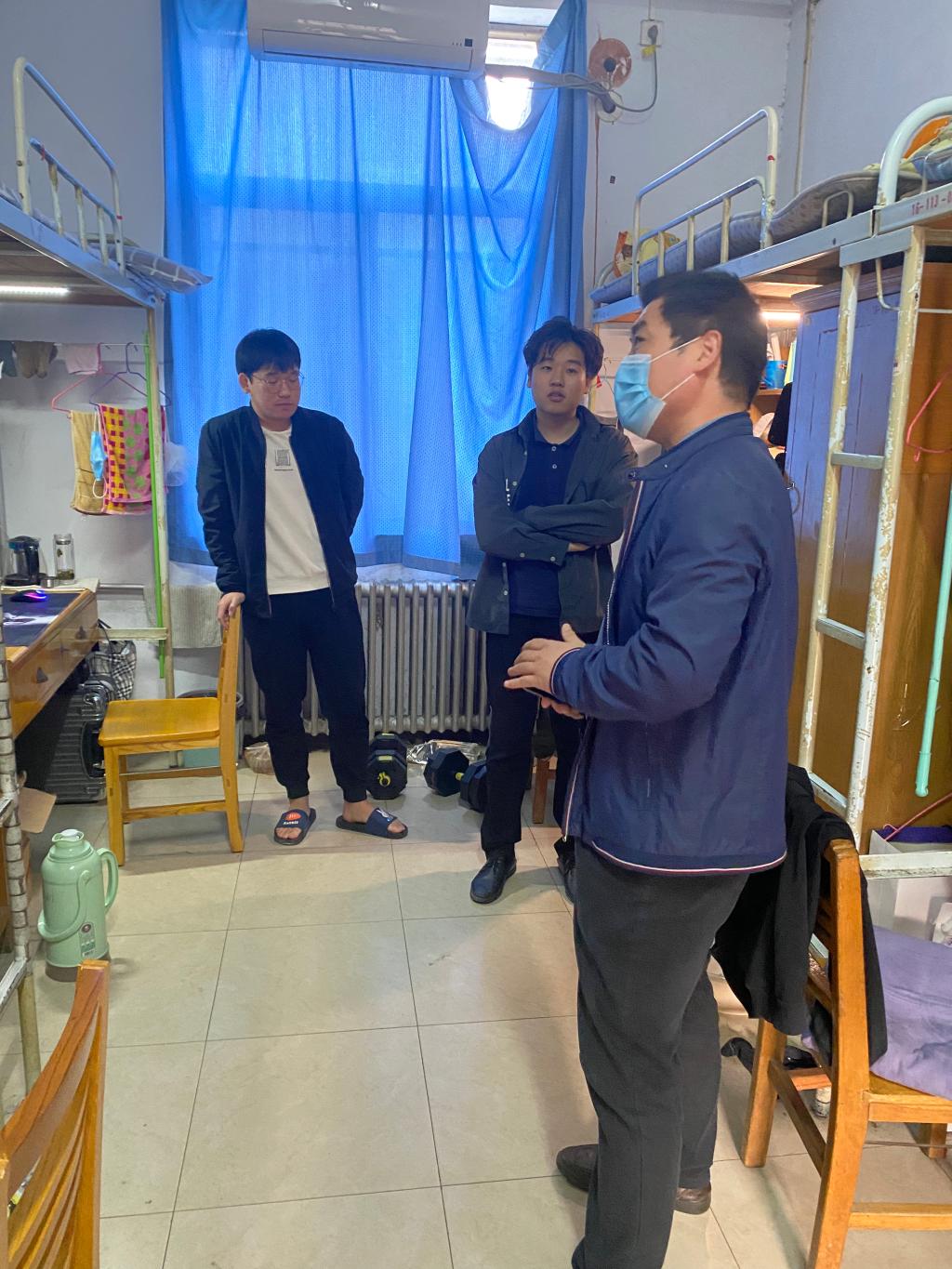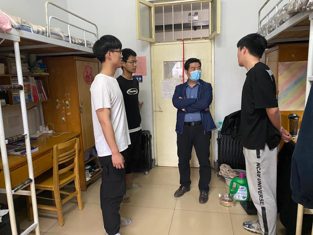 在巡查走访过程中,石书记一行实地查看了学生线上学习情况,同时了解了同学们对于疫情防控下学校政策的态度。课间,石书记亲切慰问了宿舍里的同学,勉励学生要克服困难,端正学习态度,规范学习行为,更加自觉自律地进行学习。有一部分同学表示教学效果还是不错的,也有部分同学表示线上教学受到条件的限制,相较于线下效果差了些,和老师之间的互动感变弱了。同时同学们表示在疫情之下,支持和理解学校的闭环式管理,特殊时期的特殊政策也是为了全校师生的生命安全考虑。