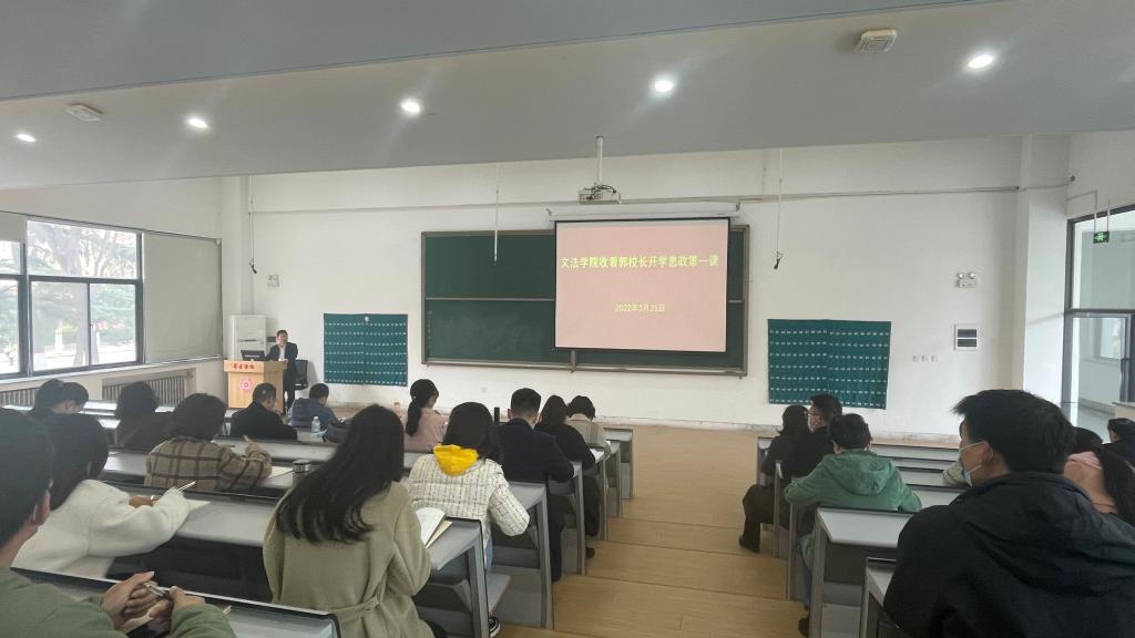 为深入贯彻习近平总书记关于“大思政课”建设的重要指示精神,按照学校《2022年春季开学思政第一课实施方案》的要求,激发师生爱党爱国热情,3月31日,文法学院组织全体师生线上学习校长郭爱先“2022春季学期开学思政第一课”。