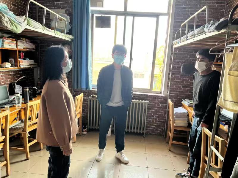 在走访过程中,刘叶青老师聆听同学们近期的生活和论文写作情况,对同学们的日常生活进行了亲切地询问。她在交流谈话中对同学们近期的就业情况做深入了解并表达关心,希望同学们能调整心态,积极拓宽就业渠道,以更好的姿态积极就业。蔡艳丽老师呼吁同学加强对宿舍安全问题的重视,各位宿舍长要负起责任。她嘱咐同学要规范用电行为,无人充电和外接插排等都是违规用电,同学们要时刻对自己以及宿舍的安全负责。
