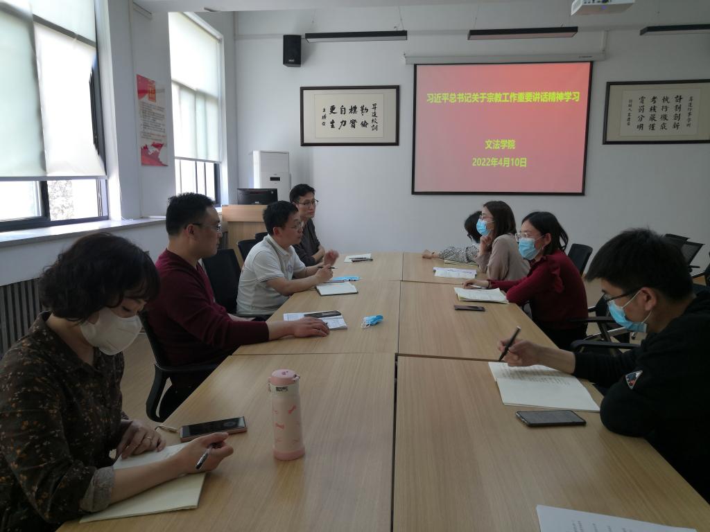 为深入学习贯彻习近平总书记在全国宗教工作会议上的重要讲话精神,4月10日,学院党委中心组在314会议室召开学习习近平总书记关于宗教工作的重要讲话精神,学院党委委员、院长段丰乐以及各党支部书记参加会议,会议由院党委书记刘晓川主持。