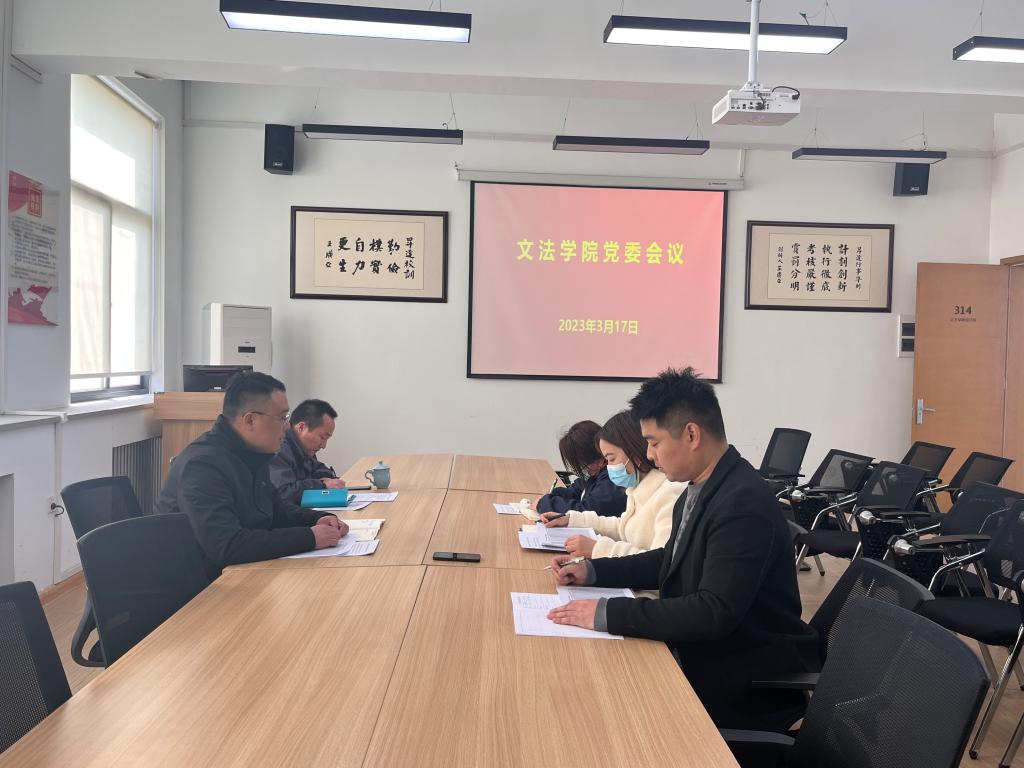 3月17日下午,文法学院党委以线上线下相结合方式在教学1号楼314会议室召开本学期第二次党委会议,党委书记刘晓川,副书记兼纪检委员赵严俊、组织委员郑玲玲、统战委员李南方、宣传委员杨玉兰、组织员金东亮参加会议,辅导员王卫丽列席,会议由党委书记刘晓川主持。